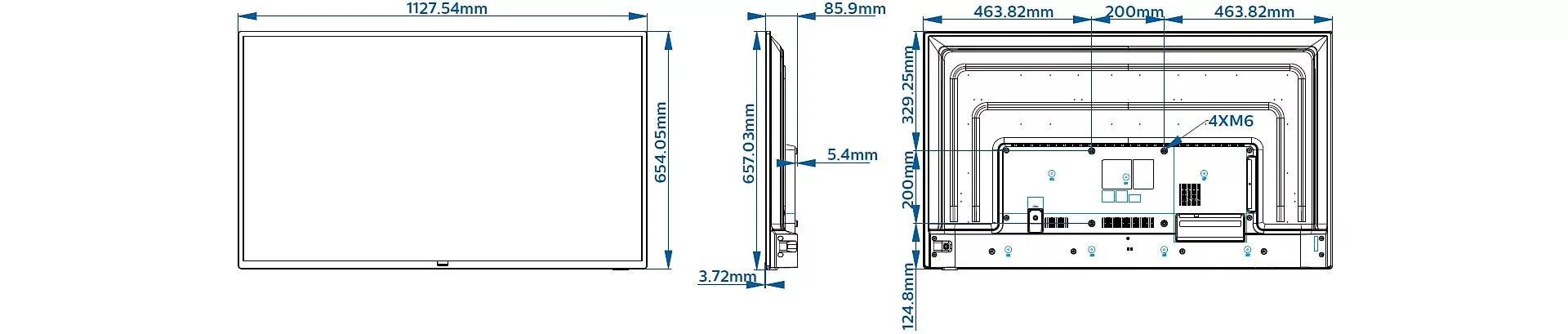 - Uhlopriečka obrazovky (metrická): 126 cm