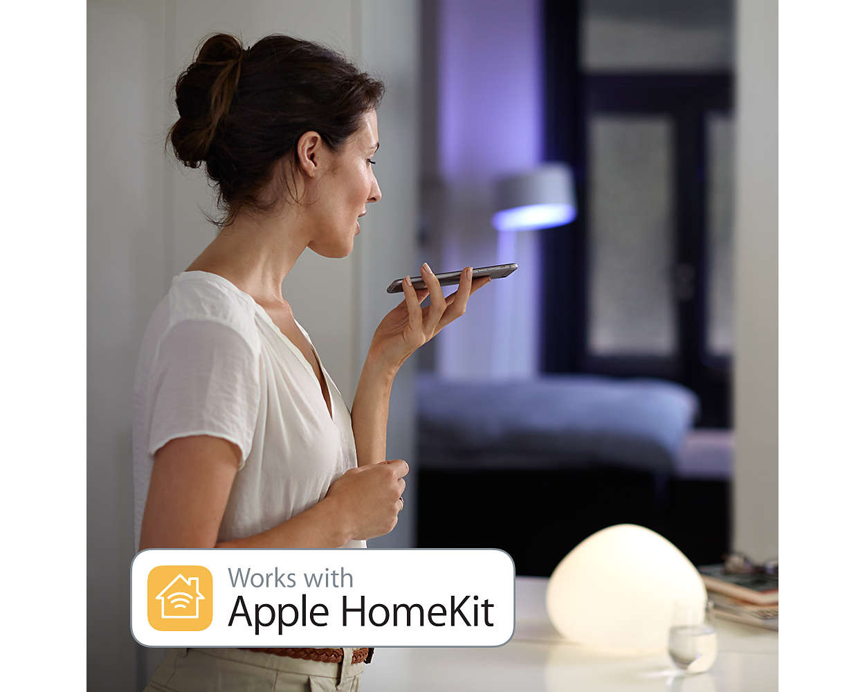 Systém Philips Hue je kompatibilný so systémami Amazon Alexa, Apple HomeKit a Google Home (funguje na platforme Google Assistant). Osvetlenie je tak možné ovládať aj hlasom. Môžete ich zapínať aj vypínať, prípadne doladiť dokonalú atmosféru úpravou jasu. Možnosť výberu z prednastavených scén. Môžete tiež meniť farby a ešte oveľa viac. Bez toho, aby ste hýbali prstom.