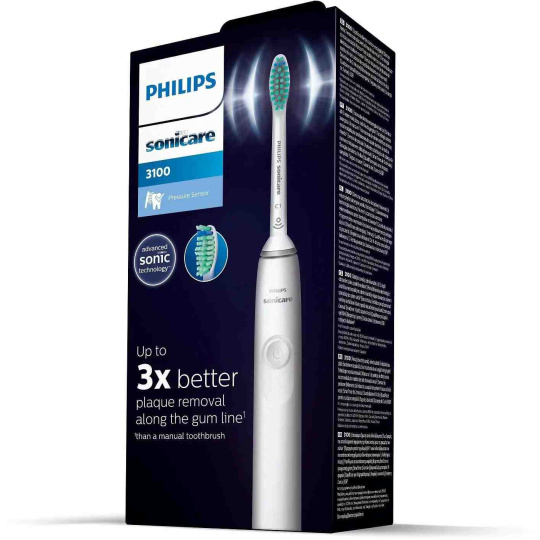 Vyskúšajte šetrnú starostlivosť overenej, efektívnej a komfortnej sonickej technológie! Klinicky je dokázané, že v porovnaní s tradičným manuálnym čistením zubov dokáže Philips Sonicare 3100 odstrániť až 3× viac zubného plaku. Je tiež vybavený citlivým tlakovým senzorom, ktorý vás jemne upozorní pulzáciou v okamihu, keď na zuby a ďasná tlačíte príliš silno. Príliš veľký tlak totiž vie spôsobiť celý rad zdravotných problémov a nie je vôbec jednoduché ho odhaliť. Kartáčok tak prispieva k lepšiemu stavu ďasien a celkovému zdraviu vašej ústnej dutiny. Prístroj za vás hlási aj optimálnu dobu čistenia zubov a to, či každú časť úst venujete rovnakú starostlivosť. Ak je pre vás čistenie zubov sonickou technológiou nové, oceníte režim Easy-Start, ktorý postupne zvyšuje intenzitu čistenia, aby ste si lepšie zvykli. Technológia BrushSync monitoruje stav opotrebovania hlavice kartáčka a dá vám signál, keď je potrebné ju vymeniť za novú. Kartáčok sa nabíja cez USB kábel.