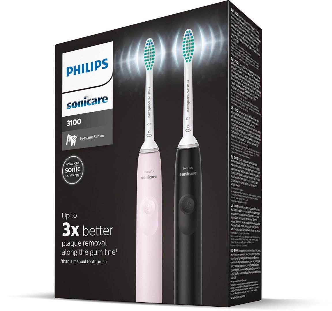 Svěřte zdraví své ústní dutiny osvědčené inovativní technologii Philips Sonicare! Hlavice zubního kartáčku Philips Sonicare 3100 vykoná až 31 000 pohybů za minutu a díky tomu zubní pastu v ústech pění na mikrobublinky likvidující zubní plak z povrchu zubů, mezizubních prostor a také podél linie dásní. Za pouhé 2 minuty čištění dosáhnete stejné účinnosti jako po dvouměsíčním tradičním čištění zubů manuálním zubním kartáčkem.