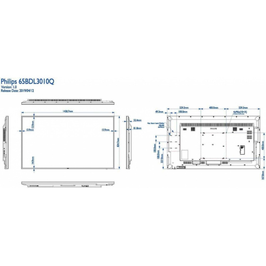Uhlopriečka obrazovky:65"; Technológia TV:LED; Rozhranie:HDMI; Formát obrazovky:16:9.