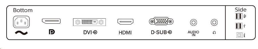 - Vstup signálu: VGA (analógový), DVI-D (digitálny, HDCP), DisplayPort 1.2, HDMI 1.4