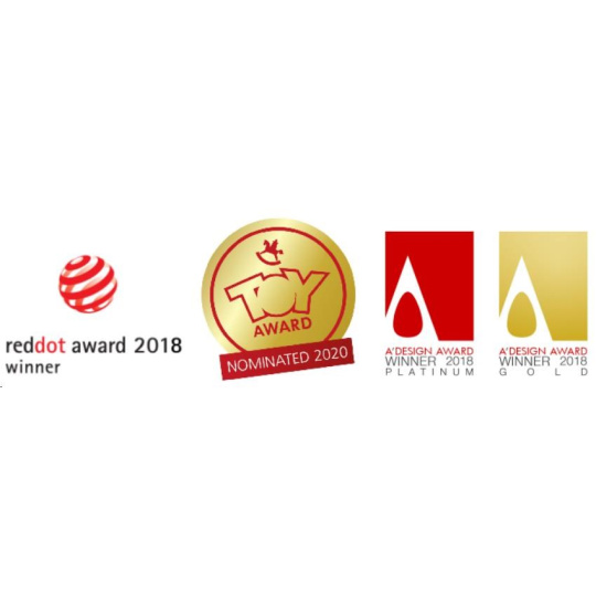 - Certifikovaný produkt s oceneniami za dizajn – Red Dot Design Award, Toy Award, A ´DESIGN