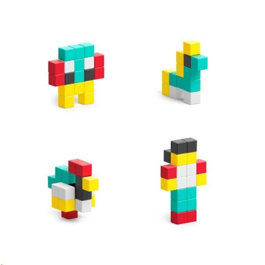 Každý z magnetických blokov PIXIO je kocka o veľkosti 8x8x8mm. Vo vnútri je 6 malých magnetov vážiacich menej než 1 g. Chytrý a unikátny dizajn magnetov dáva nekonečné možnosti skladania obrazcov – neexistuje zlá postup, ako stavať a tvoriť, lebo ide len o kreativitu, predstavivosť a šikovnosť tvorcu. Všetky modely PIXIO sú medzi sebou kompatibilné.