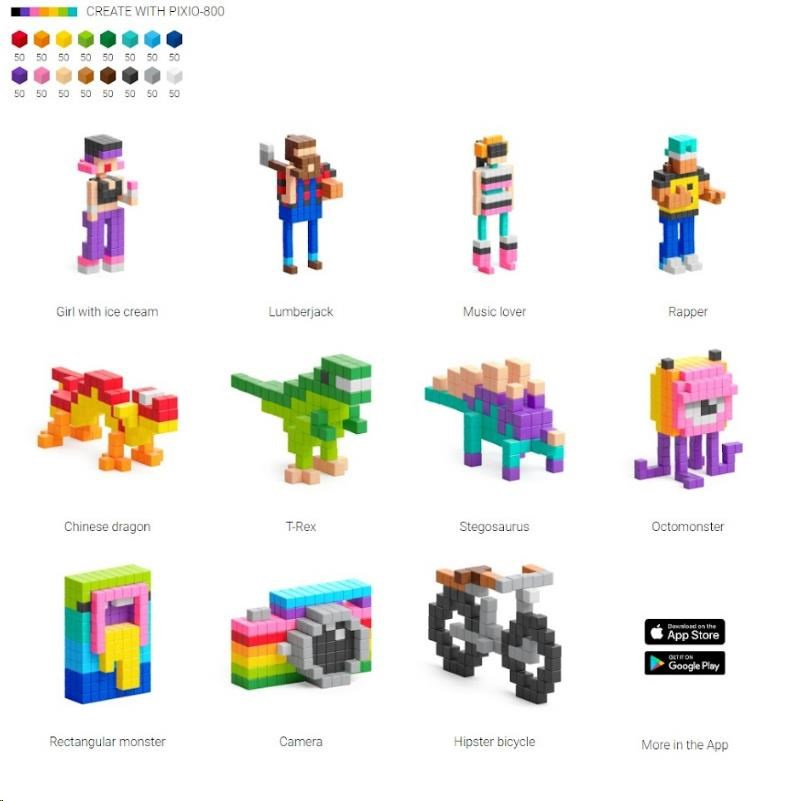 DIZAJNOVÁ SÉRIA PIXIO-800 OBSAHUJE 800 BLOKOV PIXIO V ŠESTNÁSTICH DOKONALE ZLADENÝCH FARBÁCH,