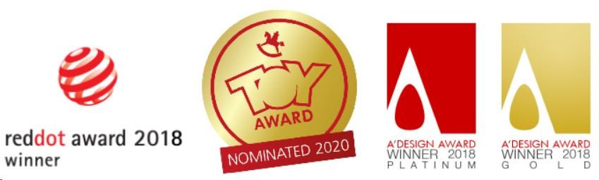 - Certifikovaný produkt s oceneniami za dizajn – Red Dot Design Award, Toy Award, A ´DESIGN