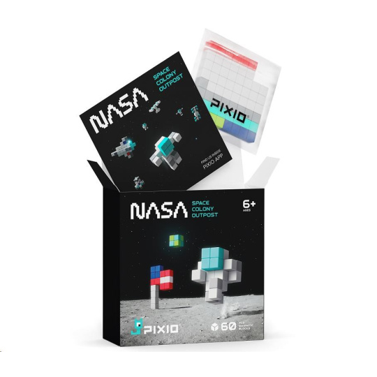 Stavebnica PIXIO 31102 NASA Space Colony Outpost (Koloniálna základňa) obsahuje 60 kociek PIXIO v 5 farbách. Umožnia oživiť vaše kreatívne nápady a prinesú farebnú radosť do života. Začnite stavbou jednoduchých modelov podľa pokynov a potom, až budete pripravení, prejdite k vytváraniu vlastných návrhov. S touto sadou si môžete postaviť astronautov, raketoplán, lunárny modul, lunárne vozidlo, satelitný systém, rover a mnoho ďalších. Pixio je splnený sen fanúšikov Pixel Artu, hráčov Minecraftu a všetkých, ktorí sa radi hrajú. Použite ho ako učebný zdroj na rozvoj detskej kreativity. Obsahuje 5 farieb, ktoré vám pomôžu premeniť jednoduché tvary na skvelé objekty a postavy (biela 29x, sivá 9x, svetlomodrá 8x, červená 6x, modrá 4x, svetlozelená 1x).