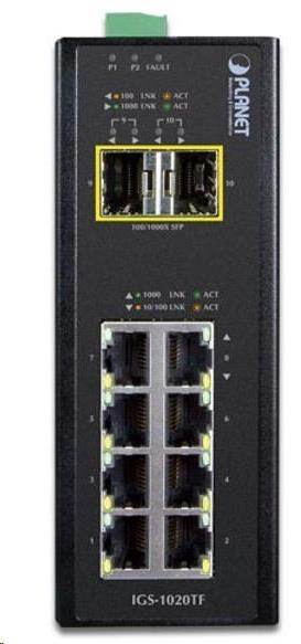 Planet IGS-1020TF, Switch, průmyslový, 8x 10/100/1000T, 2x 100/1000X SFP, -40~+75°C