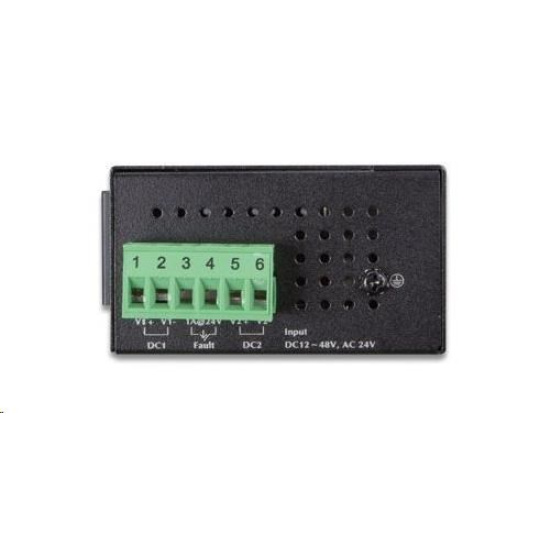 8portový 100Mbitový prepínač a konvertor pre priemyselné aplikácie. Redundantné napájanie DC 12-48 V / AC 24 V, spotreba energie <2,5 W.