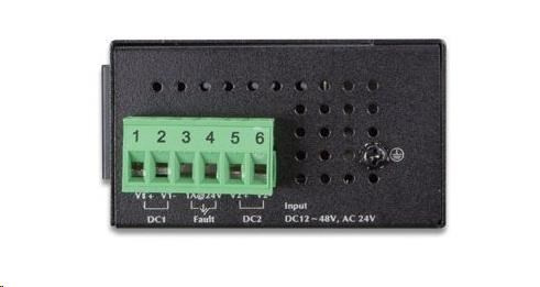 8portový 100Mbitový prepínač a konvertor pre priemyselné aplikácie. Redundantné napájanie DC 12-48 V / AC 24 V, spotreba energie <2,5 W.