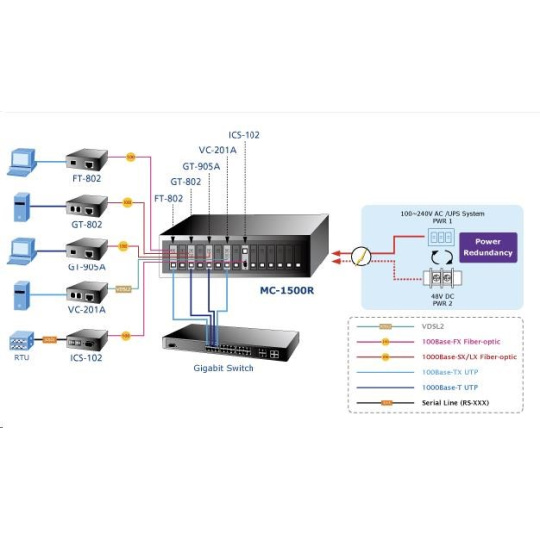 - možnosť pridať redundantný zdroj napájania DC 48V MC-15RPS48