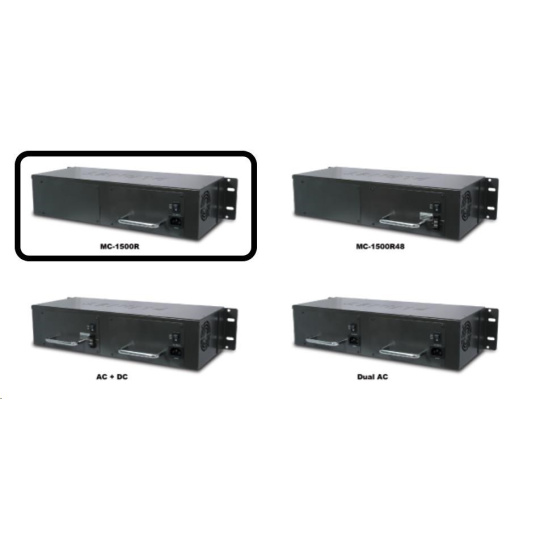 Planet MC-1500R, 15 slotů pro media konverotry, 19"/2,5U, napájení AC 230V, možno dokoupit DC 48V zdroj (redundance)