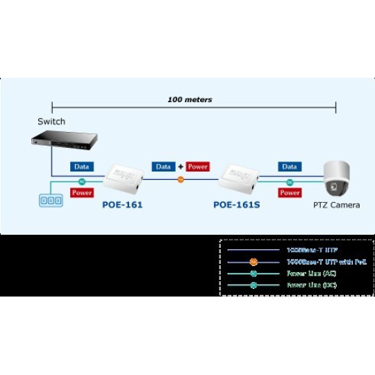 POE-162S Rozdeľovač PoE IEEE802.3at, 30 W, Gigabit