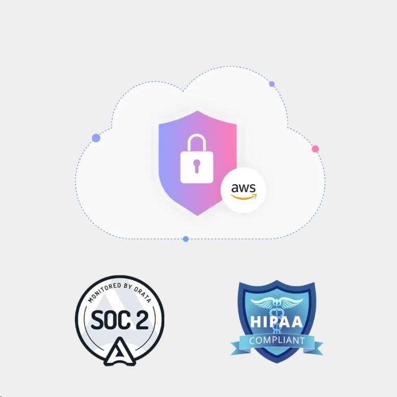 Spoločnosť Plaud kladie maximálny dôraz na bezpečnosť vašich údajov. Využíva hosting iba na serveroch Amazon AWS. Okrem toho sú záznamníky certifikované na zhodu s audítorským štandardom SOC2 a zdravotníckym štandardom HIPAA na zaobchádzanie s citlivými údajmi pacientov.