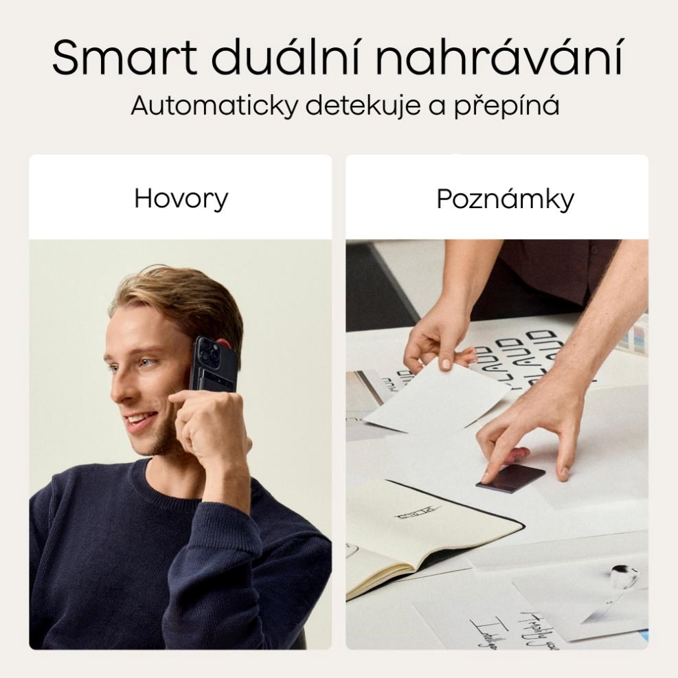 - Automatický duálny režim nahrávania – hlasové poznámky alebo telefonické hovory