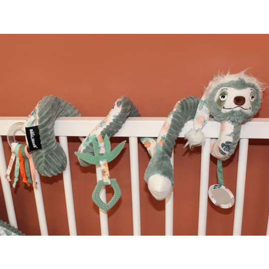Plyšová spirála na postieľku, na kočík alebo na hrazdičku, v podobe roztomilého lenochoda upúta pozornosť každého bábätka. Úžasne mäkučká spirála s chrastítkom, zrkadielkom, kousadlom i pískacou hračkou stimuluje detské zmysly, rozvíja jemnú motoriku a koordináciu očí a rúk. Prezrite si originálnu spirálu, ktorá vykúzli úsmev na tvári deťom aj rodičom.