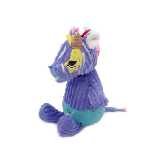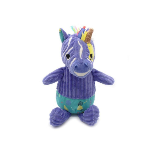 Roztomilý plyšák v podobe zebry, v krásnej fialovej farbe, je originálnym darčekom ku každej príležitosti. Úžasne hebká plyšová zvieratko ušité z mäk *manšestru*, ozdobené farebnými stuhami, je ideálnym spoločníkom do postieľky alebo kolísky, do kočíka aj na cesty. Plyšovou zebru v darčekovej krabičke a pokladničke môžete obdržať miminco aj väčšiu slečnu.