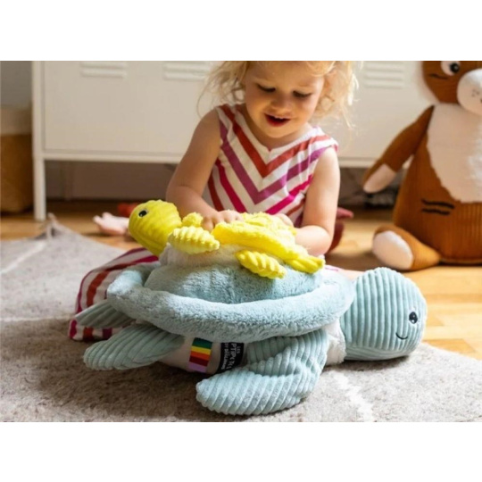 Plyšové zvieratko v podobe veľkej, mäkkej a úžasne hebkúčkej želvy poteší dievčatká aj chlapcov. Plyšová želva, vhodná pre bábätká od narodenia aj staršie deti, je krásnou hračkou na zábavu aj na mazlenie. Veľký plyšák môže byť príjemným vankúšikom, zvieracím kamarátom do postieľky aj do auta, parťákom pre detské hry. Vybrať si môžete z viacerých farebných variantov.