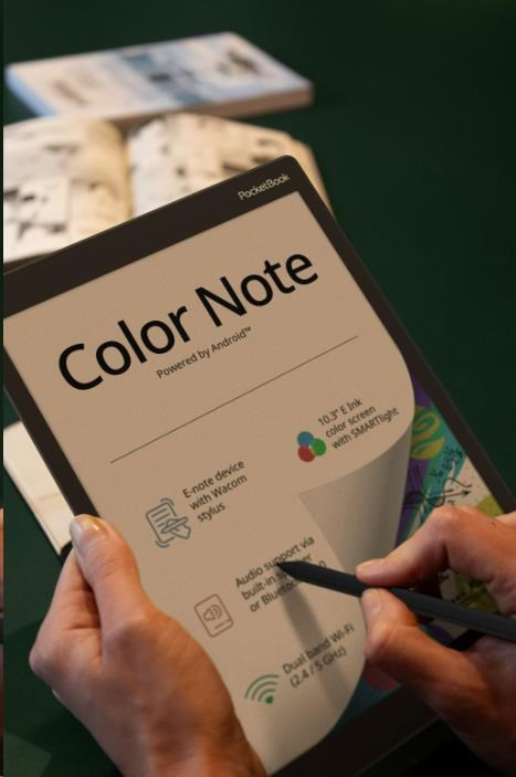 - Veľký farebný displej 10,3” E Ink Kaleido™ 3, bezpečný pre oči