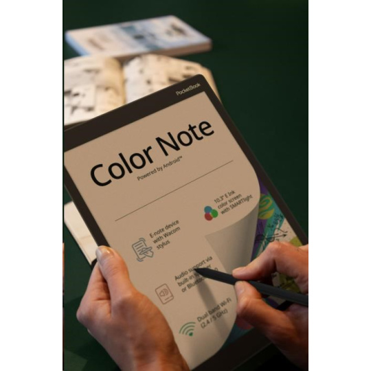 - Veľký farebný displej 10,3” E Ink Kaleido™ 3, bezpečný pre oči