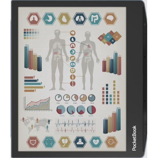 7“ farebná obrazovka, bezpečná pre oči a založená na najnovšej technológii E Ink Kaleido™ 3. O 50 % vyššie rozlíšenie farebných e-častí a PPI.