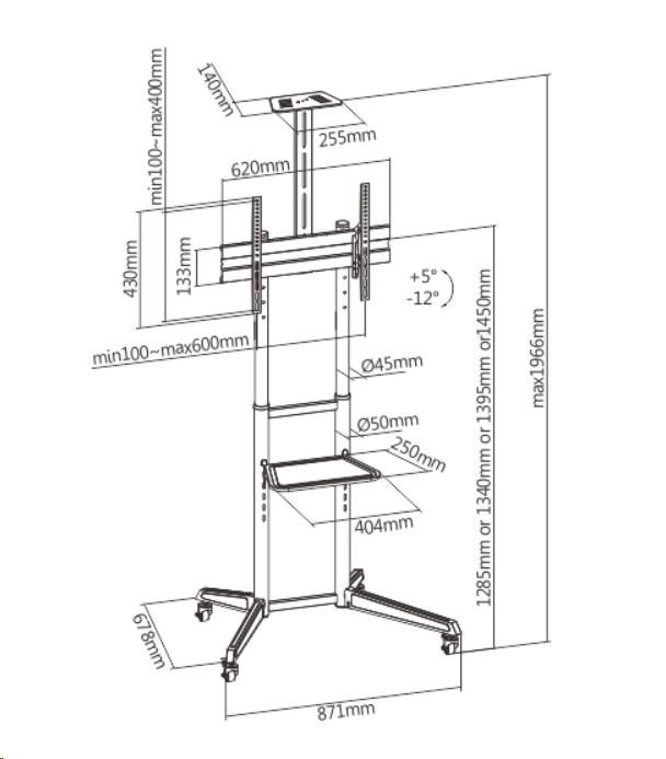 - Rozsah výškového nastavenia1285, 1340, 1395 alebo 1450mm