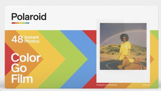 Go Film Multipack 48 fotografií Ide o, ide o, zmiz. Trojité balenie filmu Polaroid Go, aby vám na cestách nedošiel. V balení je 48 malých farebných fotografií na okamžité zachytenie veľkých nápadov. Každé balenie obsahuje 48 farebných instantných fotografií s lesklým bielym rámikom pripravených na svetlo sveta. Exkluzívne pre použitie s fotoaparátmi Polaroid Go. Veľkosť: 66,6 × 53,9 mm / veľkosť snímky: 47 × 46 mm Biely rámik ASA 640 Vyvolanie fotografie do 10–15 minút Najlepšie skladovať v chladničke Expozícia 48 Veľkosť filmu 46x47mm, 1,85x1,81” Typ filmu Instantné ISO filmu 640