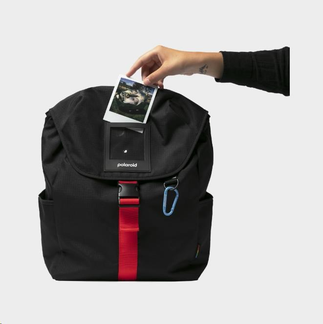 Dve bočné kapsy a klip na karabínu zaistia, že nič nezostane zabudnuté. Odolná plochá konštrukcia popruhu obsahuje plyšové penové polstrovanie pre pohodlné nosenie. Nezabudnite pridať záverečnú bodku a pochváliť sa svojím najlepším záberom v držiaku na displeji.
