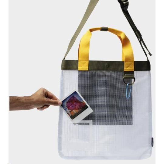Vyznačuje sa charakteristickými farbami Polaroidu a držiakom, ktorý umožňuje personalizáciu pomocou fotografie Polaroid, takže je skutočne jedinečný. Ukažte svojho rozkošného psa, najnovšiu fotografiu z dovolenky alebo úžasnú krajinu, ktorú ste vyfotili. Záleží len na vás. Držiak na polaroid Silná rukoväť a popruh na telo Nastaviteľný ramenný popruh Značka Polaroid Vonkajšia strana z recyklovaného ripstopu Polyesterová podšívka Stredové zapínanie na patentky Upevnenie karabínou Základná konštrukcia vo tvaru T Čierna taška zo 100% polyesteru Rozmery: D 360 mm x V 470 mm x H 15 mm.