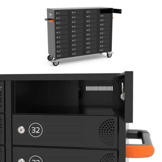 Táto skrinka dokáže nabíjať, bezpečne ukladať a spravovať až 40 tabletov, notebookov, mobilných telefónov a ďalších elektronických zariadení.