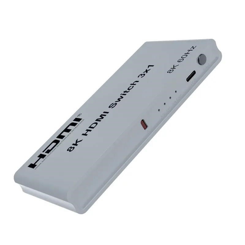 3 HDMI zariadenia na vstupe zdieľajú 1 výstupný monitor, projektor. Výber vstupných zariadení: 1.automaticky, 2.stlačením tlačidla na čele prepínača, 3.diaľkovým ovládačom