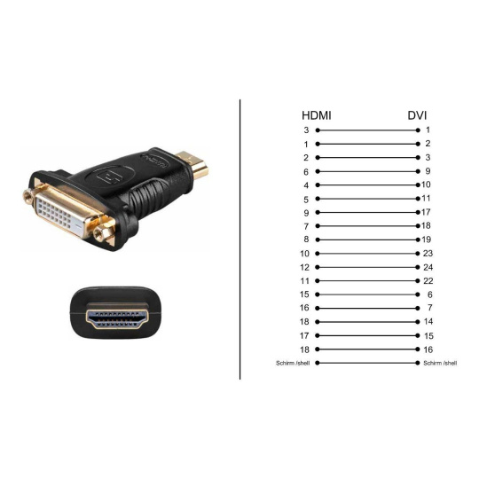 • Adapter HDMI A male - DVI-D (24+1) female Dual-Link M/F, pozlátené