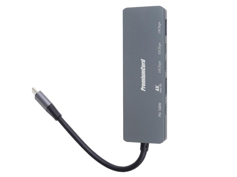 PremiumCord Adaptér USB-C na 4K@60Hz HDMI + 10G USB3.2 A + 10G 2x USB-C + PD