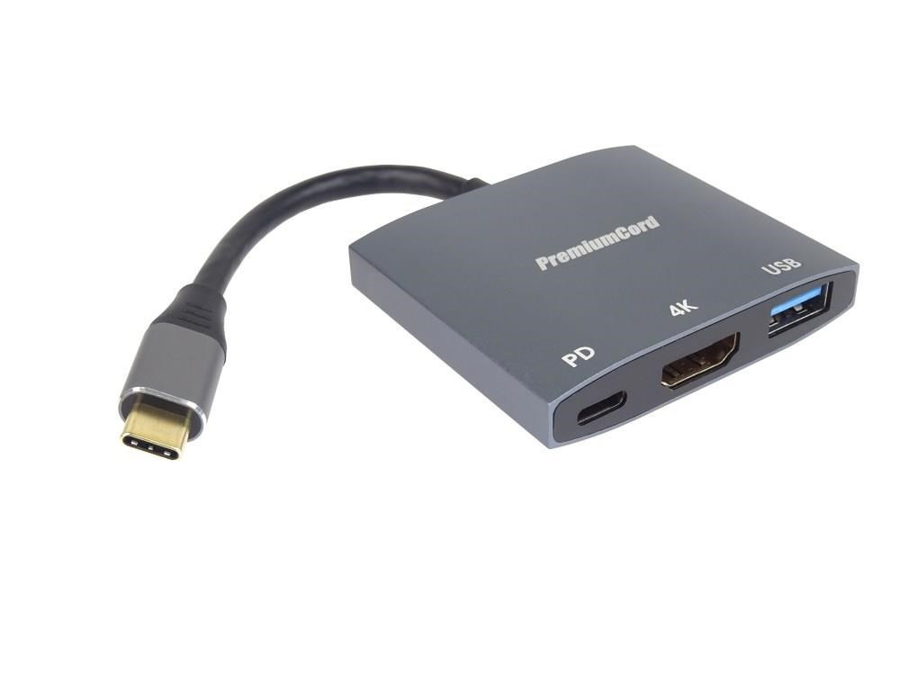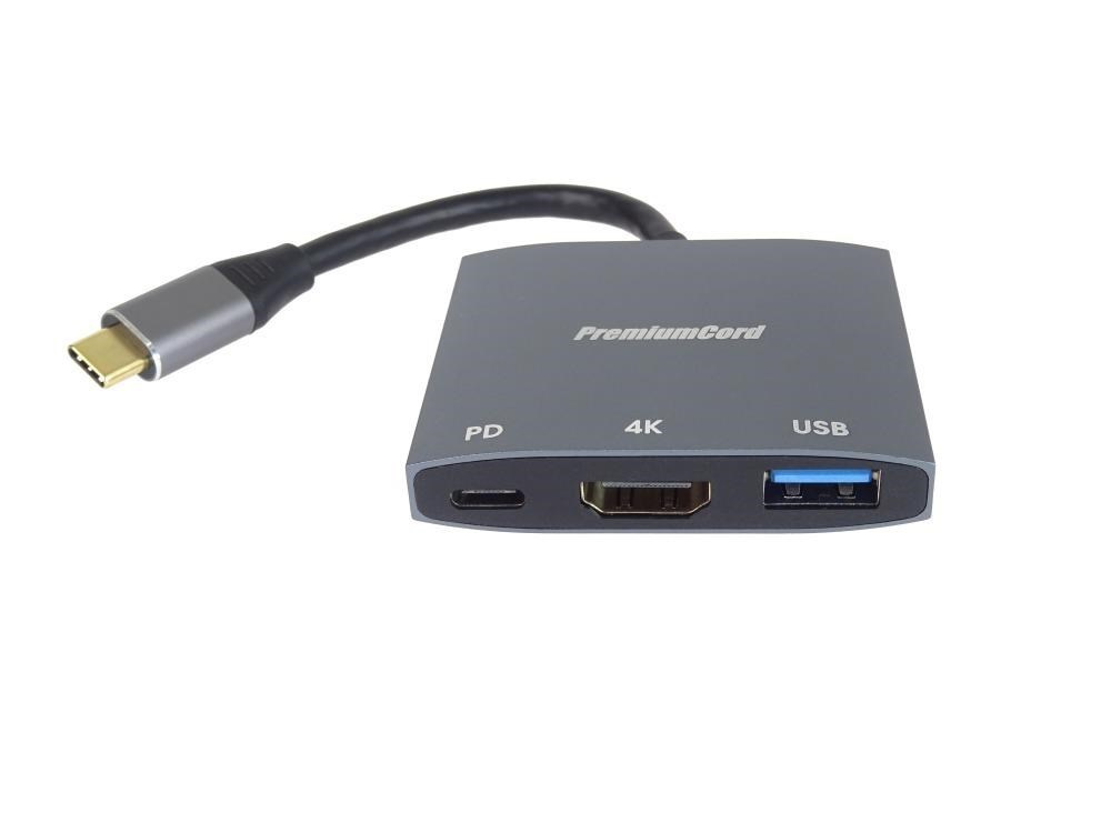 PremiumCord adaptér USB-C na HDMI, USB3.0, PD, 4K a FULL HD 1080p rozlíšenie