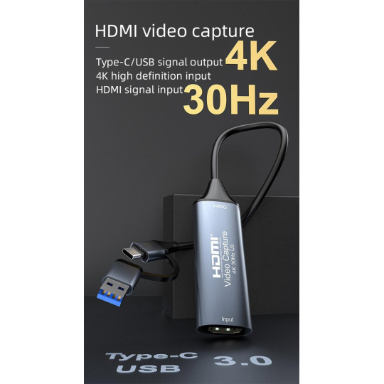 PREMIUMCORD HDMI capture/grabber pro záznam Video/Audio signálu do počítače s konektorem USB3.0 a USB-C