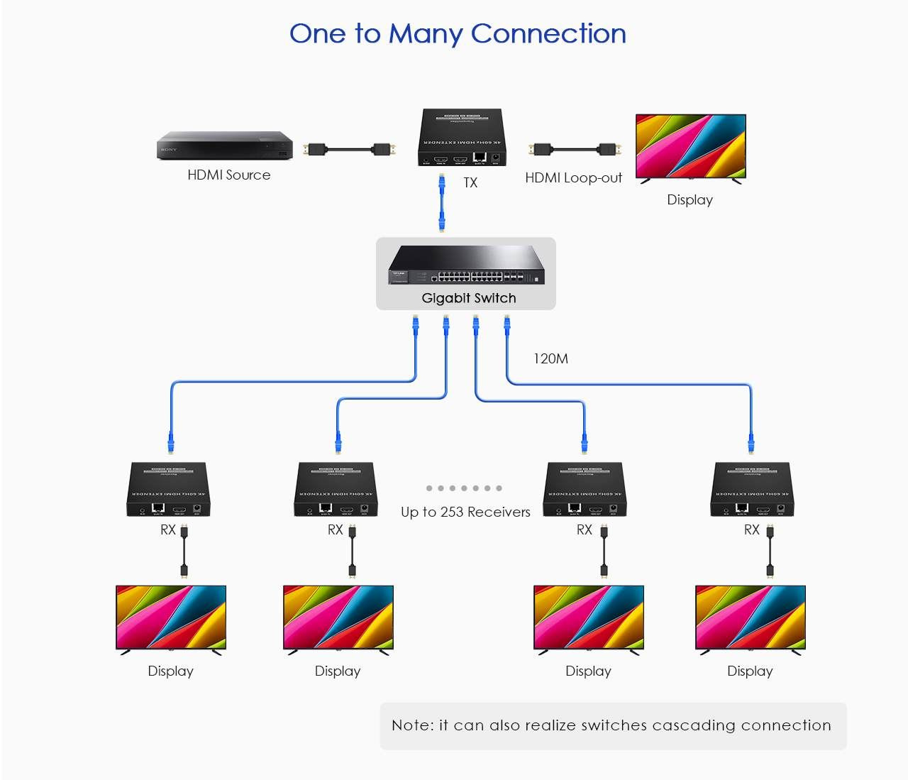 PremiumCord HDMI extender na 120m přes LAN, nekompresovaný, 4K@60Hz, přes IP