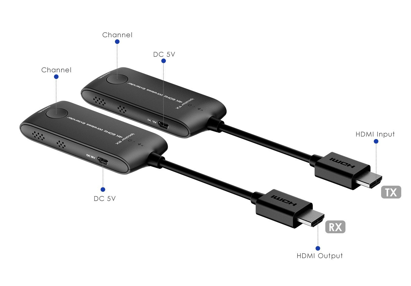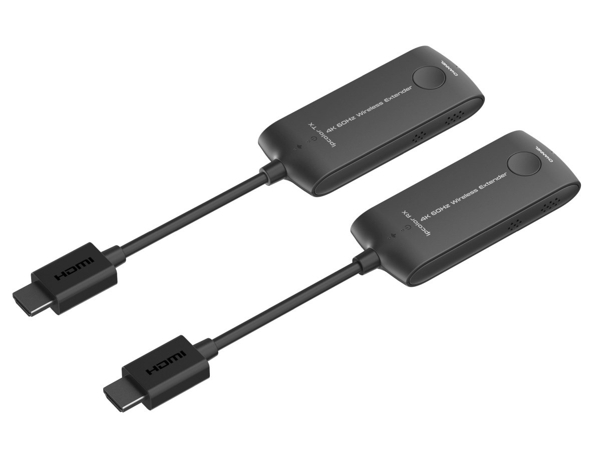 PremiumCord 4K@60Hz HDMI Wireless extender na 20m - Bezdrôtový vysielač a prijímač signálu HDMI na spojenie na 20m - Podporuje bezdrôtový prenos rozlíšenia 4K@60Hz a Full HD 1080p na vzdialenosť až 20m - Maximálny dátový tok: 18Gbps - Wifi frekvencia: 5 až 5,8GHz - Podporované rozlíšenie obrazu: 4K@60Hz/50Hz/30Hz, 2K@60Hz/50Hz/30Hz, FULL HD 1080p@50/60Hz, 1080i@50/60Hz, 720p@50/60Hz - Podporuje: 3840x2160@24/30/50/60Hz (YUV 4:4:4, YUV 4:2:2 a RGB), 1080P@50/60Hz, 720P@50/60Hz, 1920x1200@60Hz - Podporuje HDMI2.0 - Plne podporuje HDCP2.2 - Podporuje SSID párovanie - Audio formát PCM - Vysielač je malý dongle, ktorý sa zasunie priamo do konektora HDMI počítača, notebooku. Vysielač je napájaný pomocou USB kábla z USB portu. - Prijímač je malý dongle, ktorý sa zasunie priamo do HDMI konektora monitora alebo projektora. Prijímač je napájaný pomocou USB kábla z USB portu. - Jednoduchá inštalácia bez nutnosti ďalšieho SW - Vstupné konektory: HDMI konektor vidlica - Výstupné konektory: HDMI konektor vidlica - Odozva menej než 150ms - Extender je napájaný pomocou priložených USB micro káblov, ktoré sa zasunú do USB portu alebo USB napájacieho adaptéra. Extender môže fungovať bez externého USB napájania, no v prípade výpadku obrazu alebo zhoršenia zvuku, zapojte USB napájanie, pretože napájanie z HDMI konektora nestačí. - Vysielacie a prijímacie adaptéry majú krátky HDMI kábel pre jednoduché zapojenie do počítača a zobrazovacej jednotky alebo TV. - Vzdialenosť prenosu závisí od skutočného prostredia. - Prevádzková teplota: -20°C až 60°C - Vlhkosť: 0-90% (nekondenzujúca) - Rozmery TX a RX: 40mm x 200mm x 15mm - Hmotnosť TX: 40g, RX: 40g - Kryt čierne plastové Pre zariadenie je vhodné zabezpečiť optimálne podmienky pre prenos bezdrôtového signálu: 1, Odstrániť rušenie signálu iným bezdrôtovým zariadením a odstrániť prekážky, ktoré stojí signálu v ceste (kovové steny, sklo, RF rušenie a pod. v ceste signálu) 2, Signál môžu rušiť aj vplyvy vonkajšieho prostredia, ako je mikrovlnná rúra, bezdrôtové myši a klávesnice, 3. Uistite sa, že vysielacia jednotka je minimálne 20 až 30 cm od steny a je zhruba v rovnakej línii ako prijímacia anténa zariadenia na druhej strane. Extender nemusí pracovať dobre v špecifických miestach ako sú napr. suterén, tunel a pod. Set sa skladá - 1x vysielač – Transmitter - 1x prijímač – Receiver - 2x kábel USB – micro USB pre napájanie prijímača a vysielača