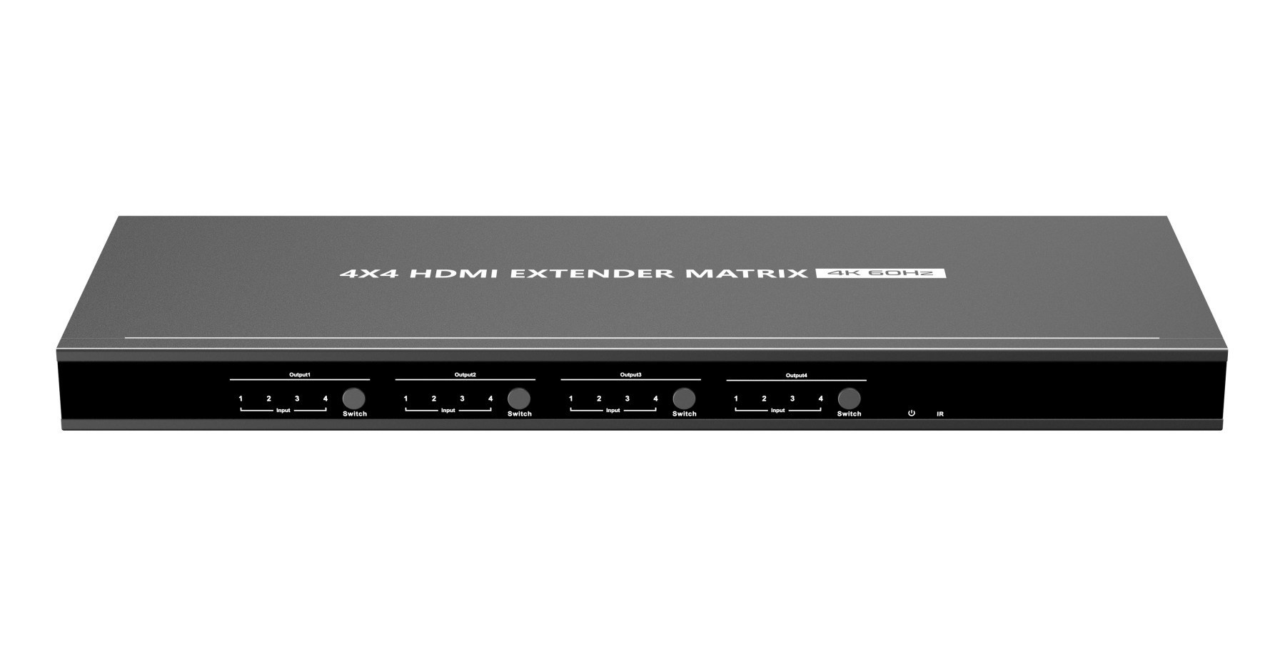 Umožní prepínať a prepojiť štyri zdroje HDMI signálu na 4 HDMI zobrazovacie zariadenia, monitory na veľkú vzdialenosť až 70m pomocou UTP kábla a navyše 4 lokálne monitory