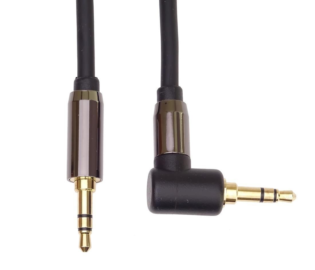 PremiumCord HQ stíněný kabel stereo Jack 3.5mm - Jack 3.5mm zahnutý 90°, 1,5m