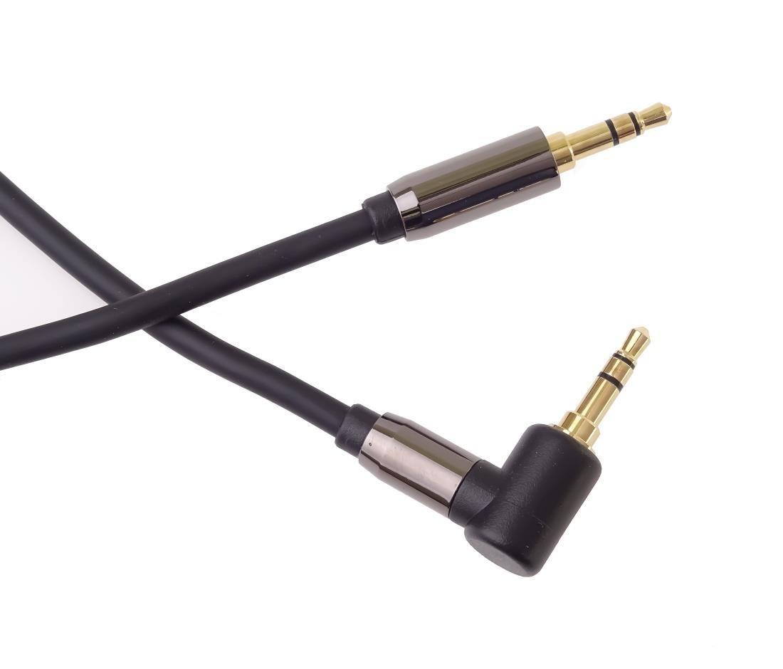 PremiumCord HQ tieneťovaný kábel stereo Jack 3,5 mm - Jack 3,5 mm zahnutý 90° 1,5 m