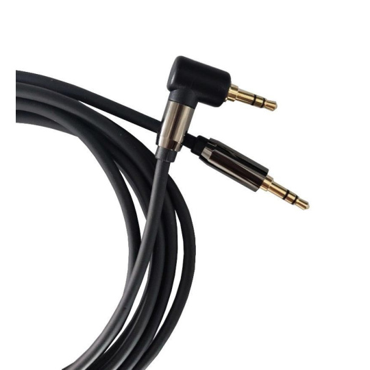 PremiumCord HQ tieneťovaný kábel stereo Jack 3,5 mm - Jack 3,5 mm zahnutý 90° 1,5 m