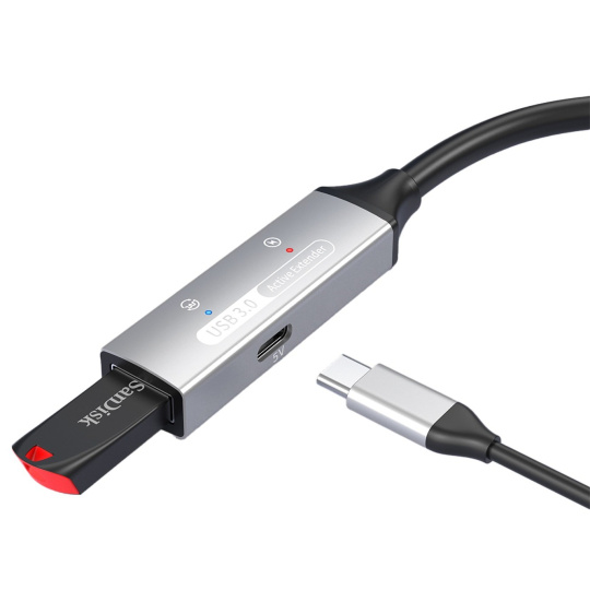 Kabel má aktívny zosilňovač a je vhodný na predĺženie USB3.0 a USB2.0 kábla o ďalších 10m. Štandardný USB pasívny kábel je obmedzený maximálnou dĺžkou 5m. Pomocou tohto aktívneho kábla je možné predĺžiť dĺžku o 10m.