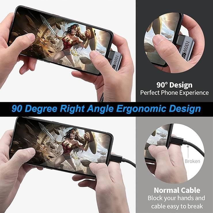 - Kábel je vybavený E-Mark čipom – riadiacou elektronikou, ktorá zabezpečuje komunikáciu pripojených zariadení. Takto je možné dosiahnuť maximálnu možné rýchlosť prenosu dát a nabíjania.