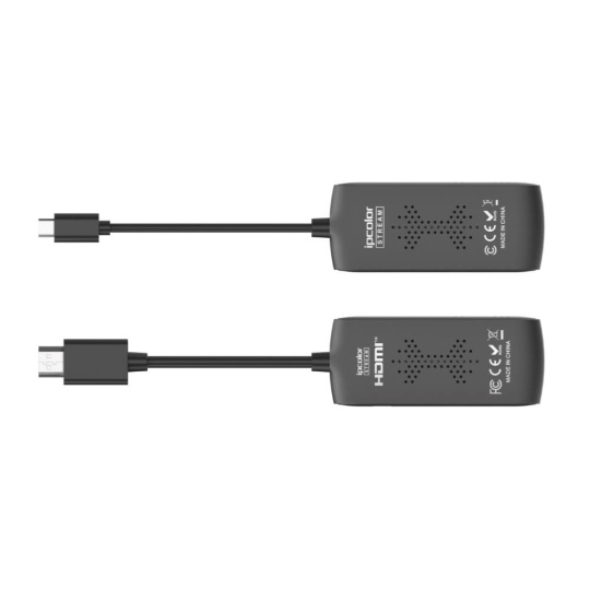 - Vysielacie a prijímacie adaptéry majú krátky HDMI kábel pre jednoduché zapojenie do počítača a zobrazovača alebo TV.