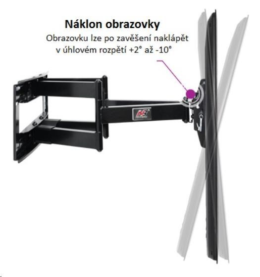Otočný a sklopný držiak na LCD, LED a plazmové TV najväčších rozmerov 50" až 90" Cenová bomba medzi držiakmi na veľké televízie - špičkový držiak s unikátnymi vlastnosťami za špičkovú cenu. Držiak unesie aj tie najväčšie televízie a pritom si zachováva výbornú nastaviteľnosť - otáčanie, sklopenie, zmena vzdialenosti. Súčasťou je aj systém vedenia káblov. Držiak na najväčšie televízory 50 až 90 palcov - nosnosť 90,7kg, otáčateľný do strán, sklopný, delkovo nastaviteľný NB SP5 / drzakyastolky.cz Technické údaje: • nosnosť 90,7kg • VESA štandard 200x200 až 800x500 • odporúčame na televízie s uhlopriečkami 50" až 90" • náklon TV +5° až -15° • natočenie do strán +75° až -75° • vzdialenosť od steny 116mm až 708mm • systém vedenia káblov • korekcia roviny TV • vynikajúca konštrukcia • bezkonkurenčná bezpečnosť • jednoduché polohovanie obrazovky • záruka 5 rokov Držiak je dodávaný vrátane hmoždiniek a vrutov na montáž držiaku na stenu a univerzálnej sady skrutiek pre zaveste televízor na držiak. Držiak podporuje VESA štandardy: • VESA 200x200 • VESA 300x300 • VESA 400x200 • VESA 400x300 • VESA 400x400 • VESA 600x400 • VESA 800x400 • VESA 800x500 • všetky ostatné VESA štandardy s hodnotou 400-800 x 200-500 Držiak NB SP5 je vhodný na zavešenie všetkých televízorov a monitorov, ktoré majú hmotnosť do 90,7kg a podporujú VESA štandard podľa tabuľky vyššie. Uvádzaná doporučená uhlopriečka nie je podstatná, iba informatívna, aké veľké obrazovky by mali hmotnosť aj VESA štandard spĺňať. Držiak preto môže byť vhodný aj pre ešte väčšie uhlopriečky ako 90 palcov.