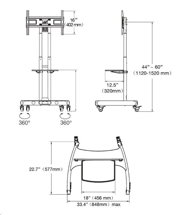 Profesionálny stojan na Tv monitory displeje NB AVA1500 Mobilný stojan na všetky typy a značky televízorov 32-65", VESA 100x100 až 600x400, nastavenie výšky 112-152cm, polička na príslušenstvo 456x320mm, vedenie káblov, kolieska s aretáciou, stabilný a spoľahlivý, nosnosť 45,3kg Televízny stojan určený nielen na komerčné účely, najvyššia kvalita a krásny dizajn. Stojan je určený na zavesenie televízorov s uhlopriečkami 32-65" všetkých typov i značiek. Dodáva sa vrátane poličky na príslušenstvo, ktorú je možné rovnako ako stojan výškovo polohovať. Lacný profesionálny stojan na televízie a monitory s uhlopriečkou 32-65 palcov, výškové nastavenie, jazda s brzdou, možnosť uzamknutia Tv, vedenie káblov, police na príslušenstvo, stabilná a bezpečná konštrukcia. TOP kvalita, prevedenie čierne alebo biele - stojany Fiber Mounts AVA1500 Televízne stojany NB AVA1500 sa najčastejšie využívajú na výstavách, prezentáciách, reklamných akciách, v čakárňach, lekárňach, ordináciách, na prednáškach a konferenciách. Jeho konštrukcia je navrhnutá tak, aby poskytoval veľmi jednoduchú a rýchlu mobilitu a výškovú flexibilitu, ktorá sa vám veľmi osvedčí práve pri rôznych prezentáciách A/V technikou. Televízne stojany na konferencie, prednášky, prezentácie - ľahké zavesenie LCD, LED, plasma, 3D, dotykových, OLED ajPrehnutých obrazoviek s uhlopriečkou 32-65 palcov, výškové nastavenie, vedenie káblov, farba čierna alebo biela - Fiber Mounts AVA1500 Technické údaje: maximálna záťaž 45,3kg vhodný na televízory a monitory s uhlopriečkou 32" až 65" podporuje VESA štandardy 100x100 až 600x400 nastavenie výšky stojanu 1120 až 1520mm systém pre skryté vedenie káblov polica na príslušenstvo 456x320mm, nosnosť 5kg, výškovo nastaviteľná kvalitné pojazdové kolieska s aretáciou výnimočná stabilita profesionálna pevná a bezpečná konštrukcia veľmi pekný dizajn farebné prevedenie čierne záruka 5 rokov Televízny stojan AVA1500 - Top kvalita za skvelú cenu Stojany na Tv NB AVA1500 podporujú VESA štandardy: VESA 100x100 VESA 200x100 a 100x200 VESA 200x200 VESA 300x100 a 100x300 VESA 300x200 a 200x300 VESA 300x300 VESA 400x200 a 200x400 VESA 400x300 a 300x400 VESA 400x400 VESA 600x400 Profesionálna konštrukcia, špičkové prevedenie, ľahká nastaviteľnosť a polica na príslušenstvo, to všetko za veľmi priaznivú cenu. Vďaka týmto vlastnostiam sa stal televízny stojan NB AVA1500 veľmi žiadaným a vyhľadávaným. Televízny stojan na reklamu a prezentáciu Fiber Mounts AVA1500 si môžete zakúpiť v čiernom alebo bielom prevedení. Výškové nastavenie, VESA štandard, police na príslušenstvo, stabilita, bezpečnosť, mobilita. Záruka 5 rokov. Veľmi lacný profesionálny stojan na Tv a monitory. Se stojany AVA1500 sa veľmi často stretávate na: výstavách prezentáciách konferenciách sieňach koncertoch prednáškach na školách v informačných centrách v ordináciách, nemocniciach čekárňach
