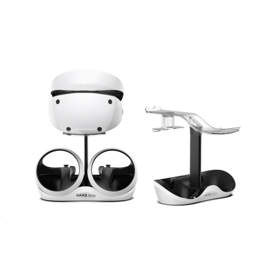 Nabíjací stojan Maxx Tech LED – špeciálne navrhnutý pre PSVR2. Nabíja oba ovládače PSVR 2 súčasne vďaka diskrétnym magnetickým nabíjacím adaptérom. Obsahuje stojan na náhlavnú súpravu, na ktorom si môžete počas nabíjania ovládačov zobraziť náhlavnú súpravu PSVR2.