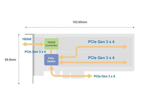 PCIe Gen3 rozširujúca karta s 2x NVMe SSD slotmi a 1x 10GbE portom na zvýšenie výkonu