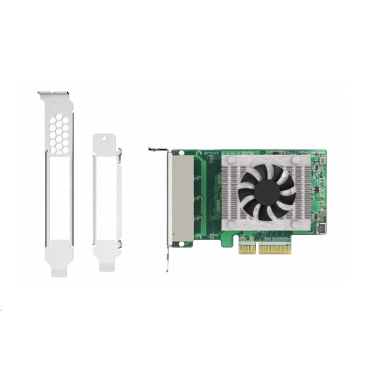 Balenie obsahuje 1 x sieťová karta (predinštalovaný low-profile držiak); 1 x QIG; 2 x Držiaky (full-height a špeciálny pre QNAP NAS)