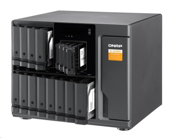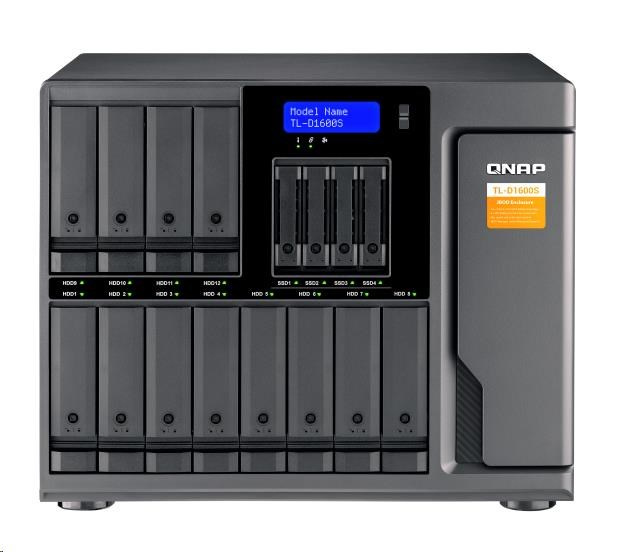 TL-D1600S je vybavený dvanástimi 3,5“/2,5“ SATA 6Gb/s diskovými zásuvkami a štyrmi 2,5“ SATA 6Gb/s SSD zásuvkami, navyše obsahuje aj kartu QXP PCIe pre pripojenie expanznej jednotky pomocou kábla SFF-8088 (alebo SFF-8644). Poskytuje spoľahlivý výkon pri čítaní a zápise pre jednoduché uloženie a zálohovanie dát.